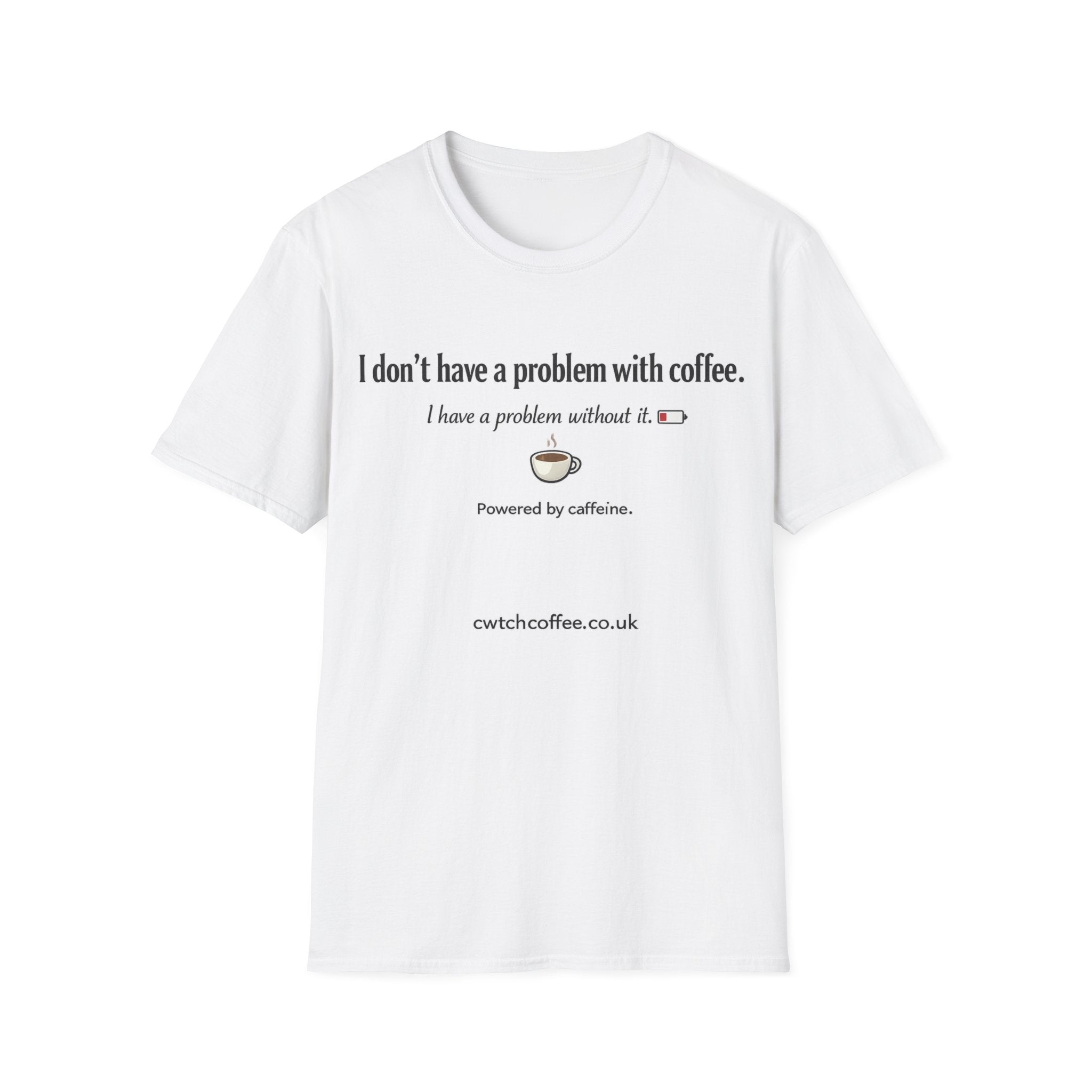 Wake up, brew, breathe — this tee speaks the language of anyone who runs on coffee. Soft, lightweight cotton sits close to the skin while a clean, understated design on the chest shares a quiet, witty confession: coffee isn’t the problem — lack of it is. Wear it to the café, during slow mornings at the desk, or while chasing the next espresso. The tone is familiar and a little clever, like a barista who remembers your order. This shirt layers easily under a cardigan or pairs with worn-in jeans for days when caffeine and comfort matter most. Product features - 100% ring-spun cotton (lightweight 153 g/m²) for a soft, breathable feel - Tubular knit with no side seams for a smooth, waste-reducing finish - Ribbed collar with shoulder tape to keep shape and prevent stretching - Pearlized tear-away label for itch-free comfort; complies with Oeko-Tex and EU safety standards - Prints applied with DTG/DTF methods; made with ethically sourced cotton and 2-year EU warranty Care instructions - Do not dryclean - Do not bleach - Tumble dry: low heat - Iron, steam or dry: low heat - Machine wash: cold (max 30C or 90F), with similar colors